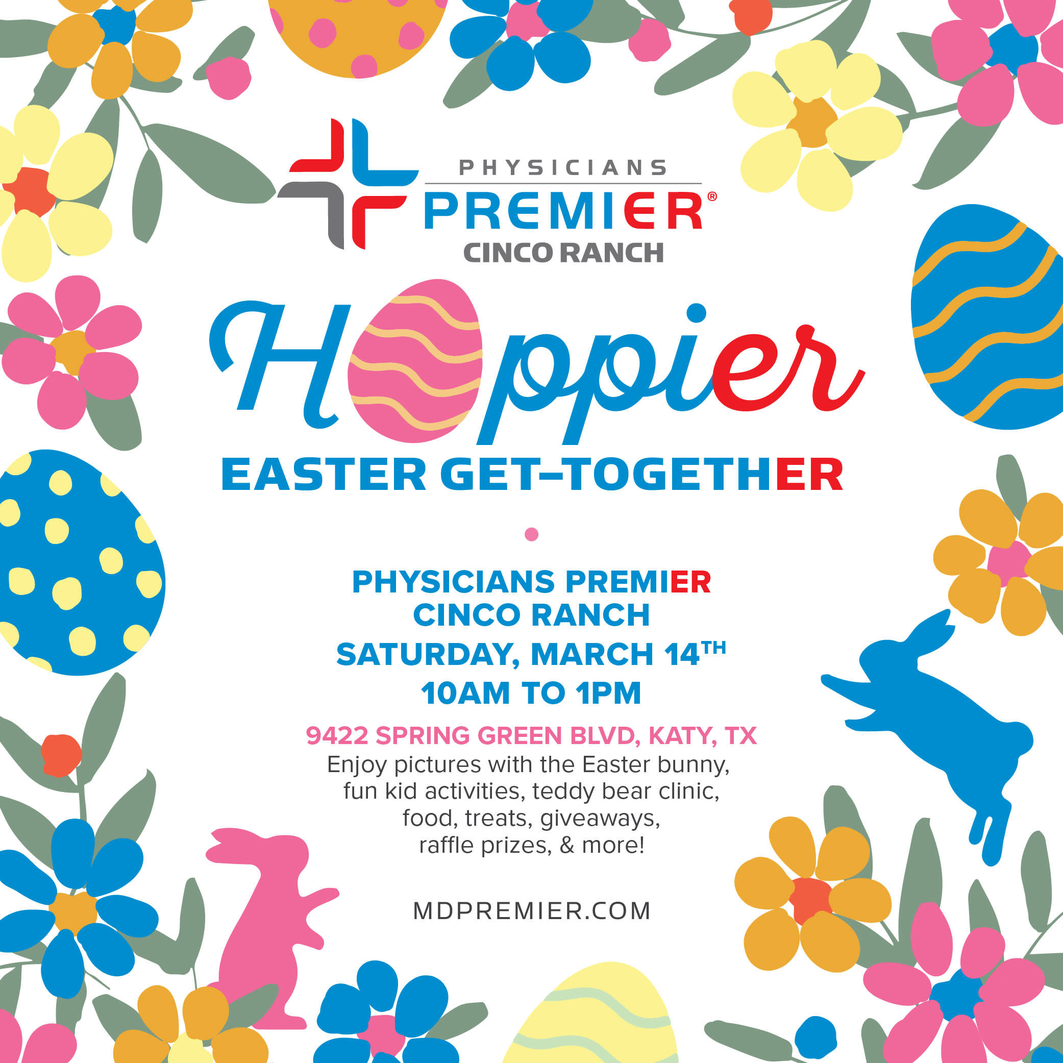 Physicians Premier Cinco Ranch is egg-cited to invite you to our Hoppier Easter Get-Together — a festive community celebration for the whole family!